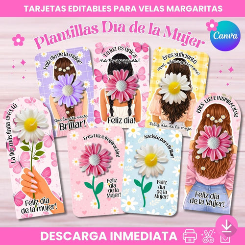 Plantillas para Velas margaritas Día de la Mujer
